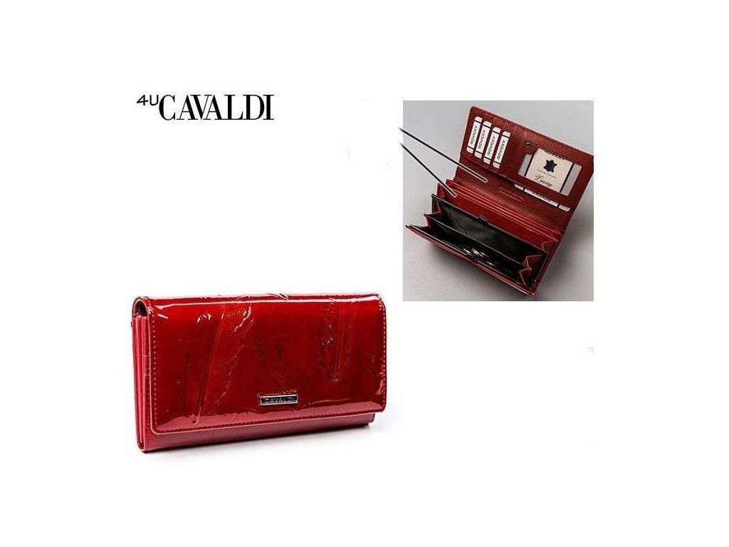 Dámska kožená peňaženka značky Cavaldi Peňaženka sa zapína na kovový cvok a nachádzajú sa v nej 9 priečinkov na karty a 5 priečinkov na papierové peniaze. Mincovník sa zapína na kovovú sponu, má dve časti,. Peňaženka má nádherný farebný odlesk a reliéf.